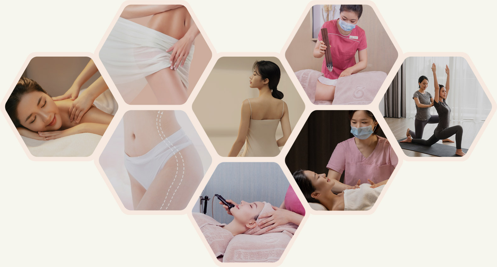 融合中式文化理念、专业护理产品、科学手法支持、设备舒适体验及运动生活指导,